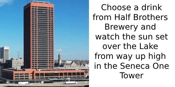 Seneca One Tower: Grab a drink from Half Brothers brewery and then drink-in the sun setting over Lake Erie while enjoying tall tales of Buffalo high above the city.